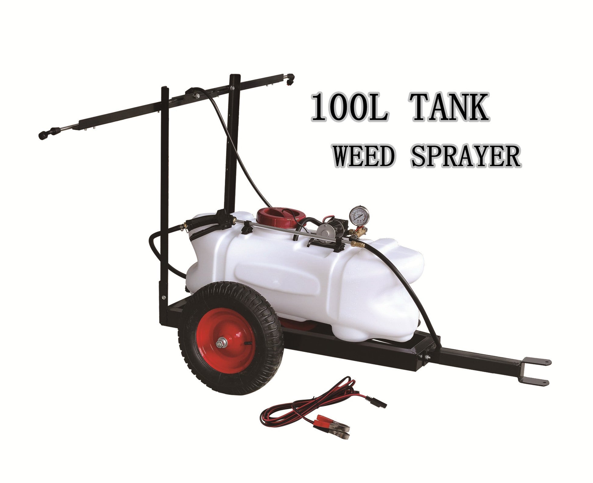 12v 100l Atv Garden Tow Behind Boom Weed Sprayer Tank Trailer