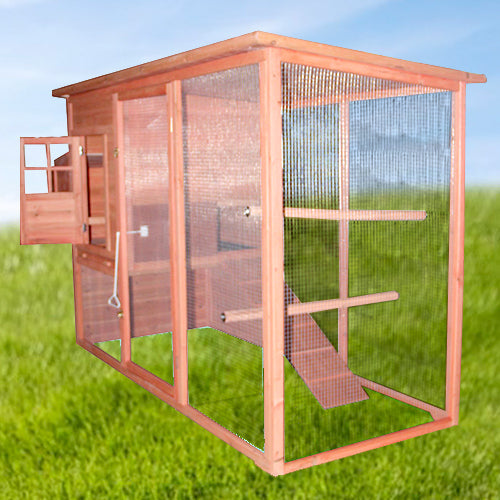 This Sturdy Chicken Coop spans at an entire length of 2.33 metre and has everything a chicken coop should have! (Well, maybe barring air conditioner). The quality chook pen is made with solid treated Natural FirWood that will not rot nor easily deformed.