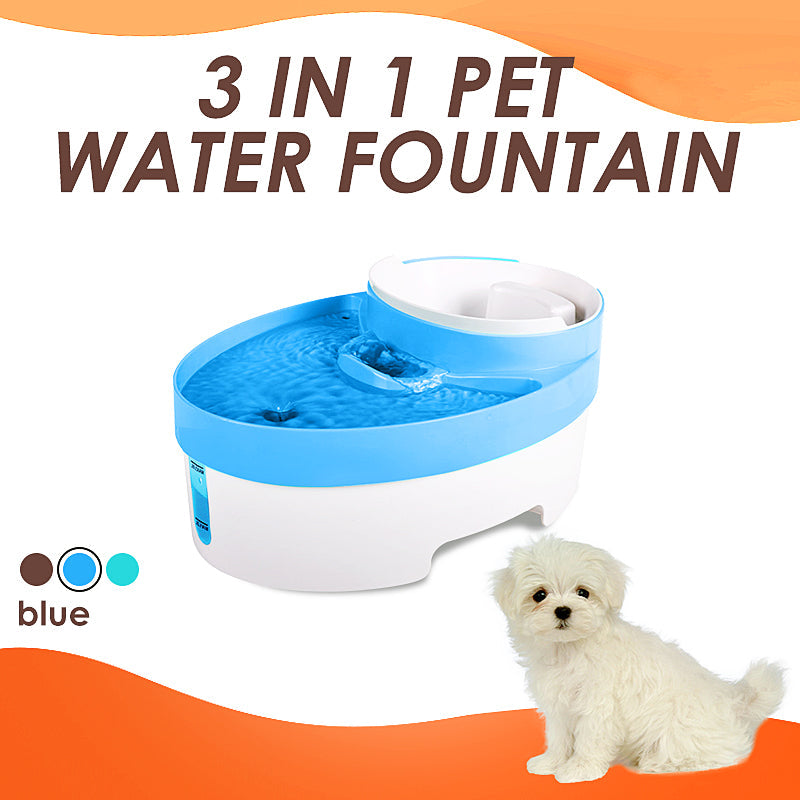3L Auto Waterfall Drinking Fountain Cat dog Pet Drinker Water Bowl with Filter (Blue)