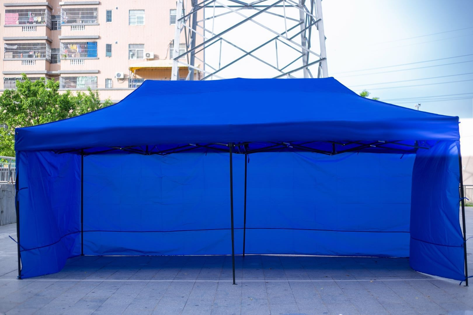 Suggestions: This product is considered a 'temporary structure' for weekly home or market use and must be securely fixed due to the size of the item. In Some circumstances it may be adequate to use light buy ropes and sandbags (provided) to secure the item. We advise customers to never leave it up overnight or under bad weather conditions. We will not be responsible for such weather damages. It is up to customer’s decision to determine the correct weather condition.