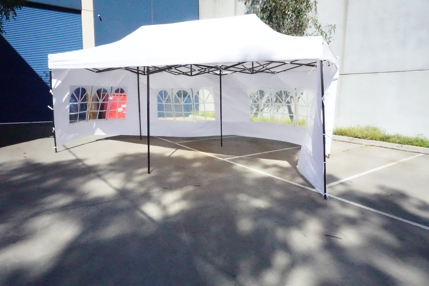 3X6M Folding Gazebo Outdoor Marquee Pop Up White 3 sided window wall