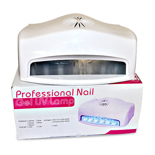 The deluxe two-handed lamp combines UV light, heat, and fan for the most intensive drying power. Dries any air, heat or UV topcoat, UV Gel or Acrylic fast with a soothing spa sensation. Advanced reflector system generates more UV output than lamps with higher wattage and cures evenly around the entire nail. New improved built-in timer with Heat Board for even curing. Hinged-top makes it easy to clean and replace bulbs or reflector. Adjustable height perfect for both manicures and pedicures. Ergonomic design of the lamp top makes it convenient for armrest. Five easy control timers to choose from: 90 seconds, 2 minutes, 3 minutes, 4 minutes and 5 minutes. Furthermore you can even swith on/off UV and UV Heat Fan.