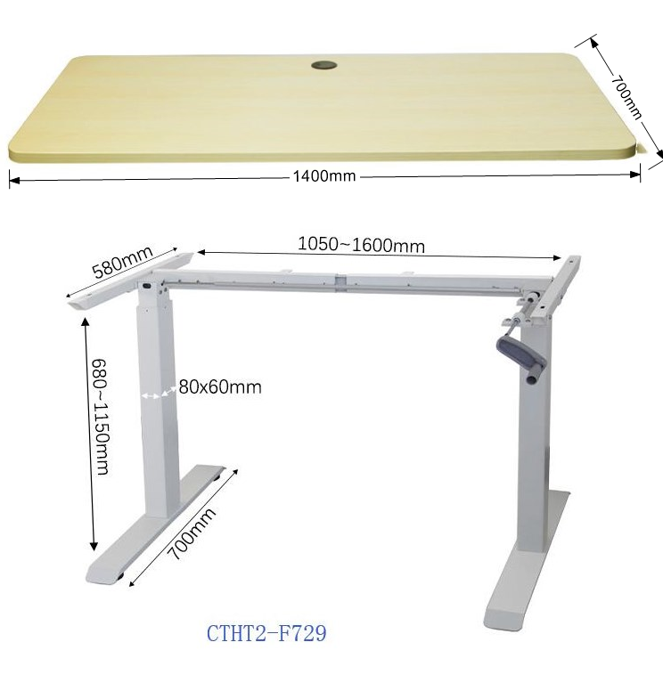 CRANK SYSTEM �Simple crank system using minimal effort to adjust to your desired sitting and standing height. The handle can be folded away neatly when not in use.